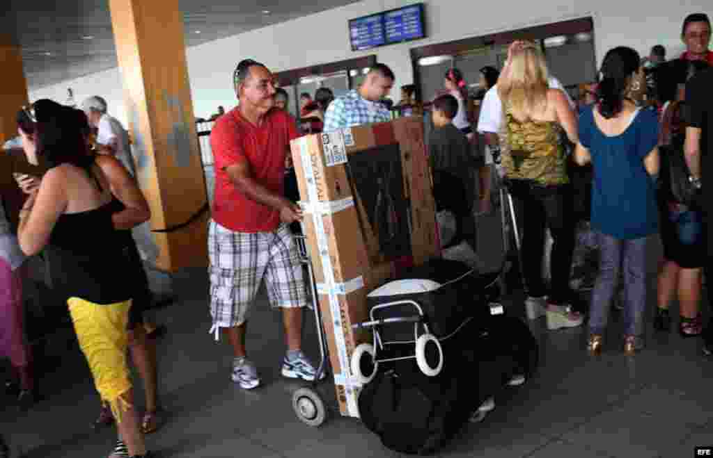 Los cubanos viajan cargados de paquetes hacia la isla. Algunos los mueven a título personal y otros han hecho de este trasiego, un verdadero oficio.
