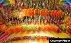 Las chambelonas pueden ser esféricas, porque el consumo de su propio dulce las engorda; o huracanadas, aunque no exhiban vórtice (no hay peligro de que, al lamérseles, nos arranquen la lengua); o acorazonadas, para que los enamorados del amor den rienda suelta a sus ansias. Pero nadie ha visto a un pirulí aplanarse hasta reducirse a su base circular y renunciar a su puntiaguda anatomía. El pirulí es, más bien, una chambelona que levanta la cabeza desleída en su dulzura, tira de sí misma y, rebelde, se triangula, harta de sumisión.